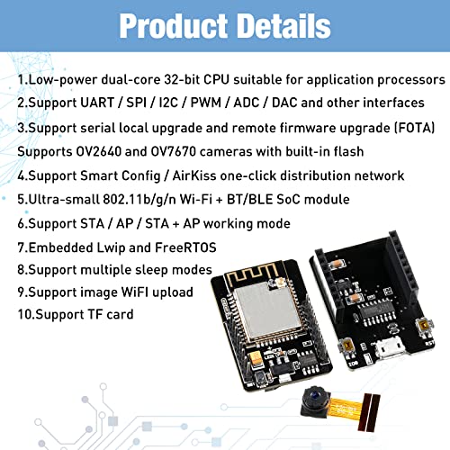 Frienda Scheda di Sviluppo ESP32 Cam 2.4 GHz WiFi con OV2640 Modulo Fotocamera e USB-Ttl Modulo di Conversione Seriale