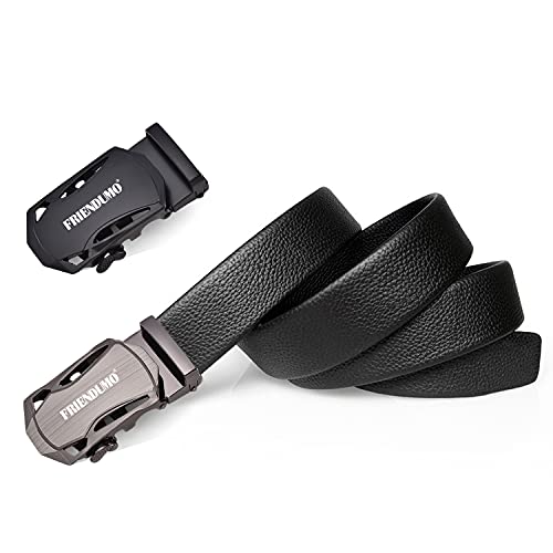 Friendumo 1 cintura + 2 fibbie cintura da uomo in pelle di vacchetta primo strato con fibbia automatica a forma cava Cintura a cricchetto larga 36 mm / tagliata su misura