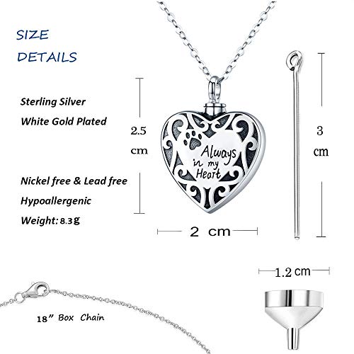 Friggem Collana in Argento Sterling per Cenere di Cane, Gioielli in Collana di cremazione a Cuore di urna, Collana con Ciondolo a ricordo di Ceneri funerarie con Medaglione a Cuore con Kit di Imbuto