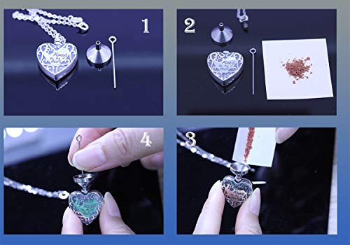 Specifiche -La dimensione della sospensione è 0,79 x 0,98 pollici, catena italiana 18 '' con chiusura scorrevole, peso: 8,3 g. È possibile aprire un delicato ciondolo a forma di cenere con il kit di riempimento a imbuto e contiene una piccola quantità di messaggi speciali, capelli, profumo, fiori secchi e cenere. Il pendente della collana dell'urna Keepsake può essere indossato sul corpo o tenerlo in auto,o posizionati dove vuoi. Ciò che è più prezioso è il tuo ricordo.
