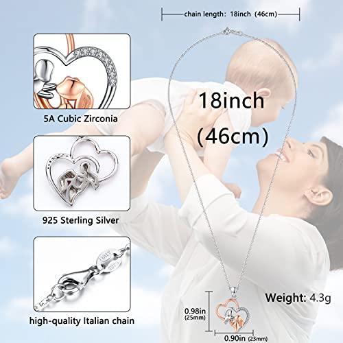 ❤ MATERIALE - Ciondolo zircone 5A, ciondolo madre e bambino in oro rosa con catena italiana, timbro in argento sterling S925 privo di nichel e anallergico, soprattutto per chi ha la pelle sensibile. Ispezione SGS superata. La superficie della collana madre figlio è trattata placcata in oro bianco, alla moda e ben strutturata. Poiché le oscillazioni della collana in argento brilleranno di brillantezza, regalo perfetto per tua madre per la festa della mamma o il compleanno.