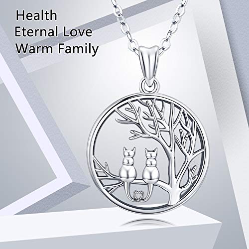 Friggem Collana con gatto in argento sterling - Ciondolo con due gatti sull'albero, pendente rotondo 18 "Cat Cat Jewelry per donna, regalo per gioielli per albero e gatto con astuccio per gioielli