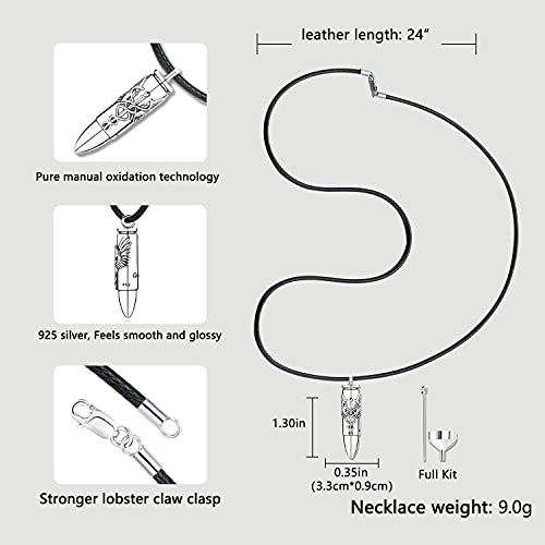 【Alta qualità】Il ciondolo è realizzato in argento sterling 925, la catena è realizzata in corda di cuoio. Ogni ciondolo in argento è senza piombo, senza nichel e senza cadmio, indossato a lungo per mantenere una buona salute.Le dimensioni del ciondolo: 33 * 9 mm / 1,3 * 0,35 pollici, peso: 9 g. Lunghezza della corda in pelle: 24 pollici.