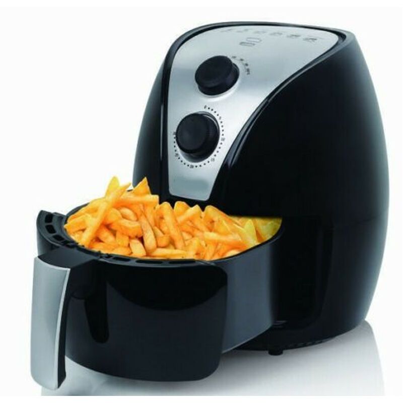 Friggitrice ad aria calda, fritture croccanti e deliziose senza olio e senza grassi! Caratteristiche tecniche: Friggitrice ad aria Ideale per friggere, tostare, grigliare e cuocere al forno Potenza: 1500W Capacità: 3,5 Litri Analogica Manopole per regolare tempo e temperatura Tempo di cottura regolabile: 0-30 min Segnale acustico Temperatura di cottura regolabile: 80°C-200°C Spia (per alimentazione e temperatura) Maniglia fredda al tocco Tecnologia di circolazione dell'area Interruttore micro di sicurezza Piedini antiscivolo Alimentazione tramite presa schuko Lunghezza cavo di alimentazione: 70cm circa Dimensioni: h32 x l25 x s25 cm circa Materiale: ABS Colore: nero Peso: 4,125 Kg circa La confezione contiene: Nr. 1 Friggitrice ad aria