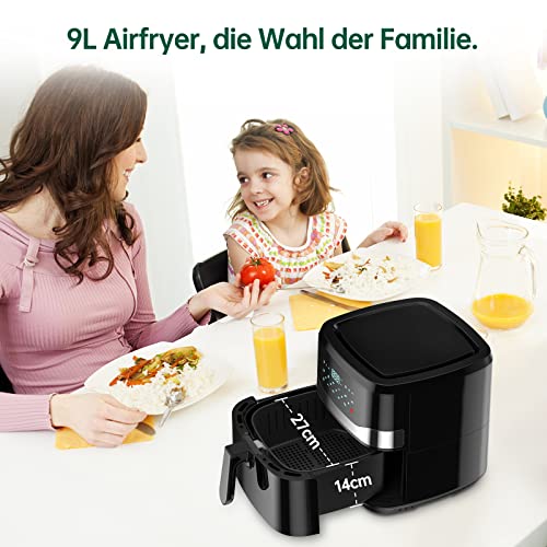 Friggitrice ad aria calda, 9 l, XXL, friggitrice ad aria calda, con touch screen digitale a LED, multifunzione, 10 programmi, colore nero, friggitrice ad aria calda, senza olio per pollo
