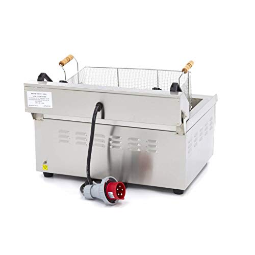 Minimo Quantità di olio: 1 x 17 litri max. Quantità di olio: 1 x 30 litri, capacità del serbatoio: 1 x 38,5 litri, con zona fredda, termostato regolabile: da 50 °C fino a 200 °C, elementi riscaldanti protetti, protezione da sovratensione, coperchio rimovibile, si trova su 4 piedini in gomma, facile da pulire, peso netto: 19,4 kg, dimensioni: B606 x T575 x H407 mm, 400 V, 50 Hz, 3 fasi, 6000 Watt.