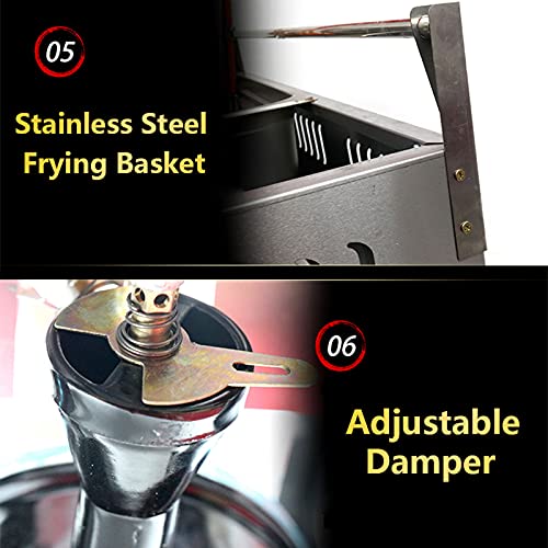 Friggitrice a gas Friggitrice a gas 11L, potenza di fuoco regolabile, friggitrice GPL in acciaio inossidabile di grande capacità con cestelli e coperchi rimovibili, per patatine fritte ciamb