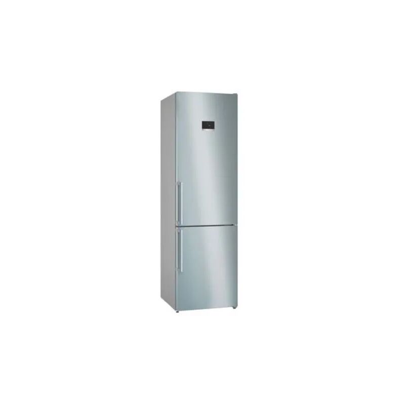 Frigorifero combinato Bosch Se desideri un frigorifero combinato spazioso, innovativo e dal design accattivante, il Frigorifero Combinato BOSCH KGN397ICT Classe C-Inox 363 lt No Frost Cl.C è la scelta perfetta per te. Questo frigorifero ha una capacità netta totale di 363 litri, divisa tra il vano frigorifero da 260 litri e il vano congelatore da 103 litri. Il frigorifero è dotato di sistema No Frost, che impedisce la formazione di ghiaccio e brina e garantisce una temperatura costante in ogni zona. Il frigorifero ha anche il sistema Multi-Airflow, che distribuisce l'aria fredda in modo uniforme su tutti i livelli e mantiene gli alimenti freschi più a lungo. Il display interno LED ti permette di regolare facilmente le impostazioni del frigorifero, mentre le maniglie integrate ti offrono una maggiore praticità. Il frigorifero ha inoltre un cassetto con zona 0°C, ideale per conservare carne e pesce alla temperatura ottimale. Il congelatore ha 4 stelle e una capacità di congelamento di