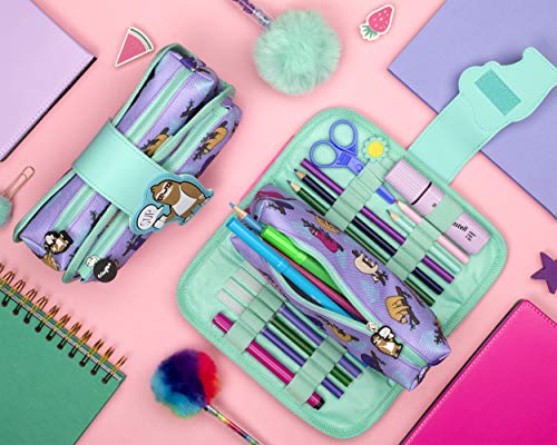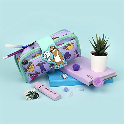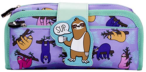 Fringoo - Astuccio in silicone con 2 scomparti con cerniera, per cancelleria, per adolescenti, scuola università Sup Sloth