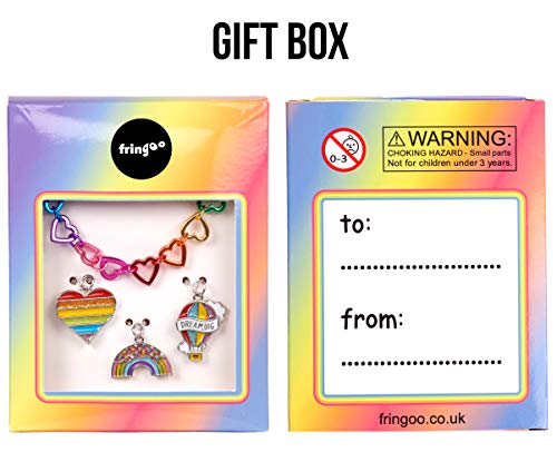 Fringoo - Bracciale con Ciondolo per bambine | Gioiello per ragazze Ideale come regalo | Personalizzabile Bracciale Cuore Arcobaleno con 3 ciondoli - Non arrenderti