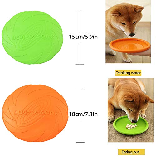 Frisbee Per Cani Giochi Disc Cani Frisbee In Gomma Frisbee Cani Morbidi Frisbee Gomma Animali Domestici Per Terra e Acqua, Addestramento Cane, Lancio, Cattura e Gioco (15 Cm Verde + 18 Cm Arancione)