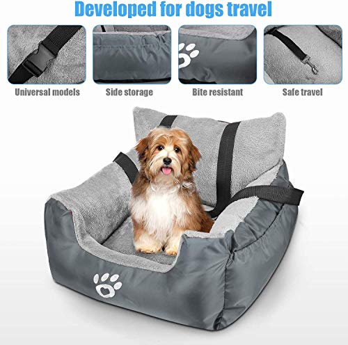 FRISTONE - Seggiolino auto per cani con guinzaglio di sicurezza a clip e tasca per cuccioli, piccolo animale domestico comodo e antiscivolo