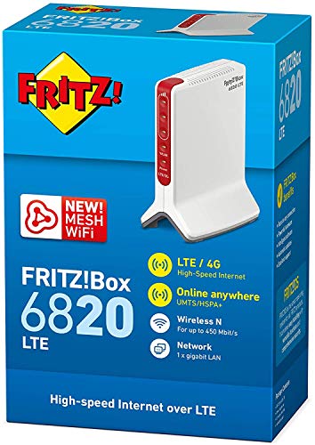 AVM FRITZ!Box 6820 LTE Edition International, Modem Router 4G/3G con Wi-Fi N 450 Mbit/s, 1x LAN Gigabit, SIM Slot, Interfaccia in italiano