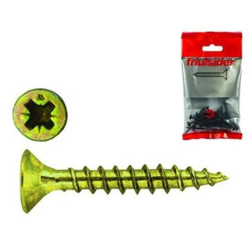 A testa svasata piana con impronta PZD, interamente filettata. Con finitura zincata gialla. In blister.