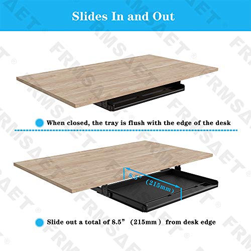 FRMSAET Accessori per mobili da ufficio Cassetto per tastiera sotto la scrivania Vassoio multiuso con staffa regolabile in altezza per organizzare tastiera, strumento, matita, gomma. (Grande, Nero)