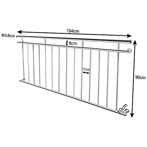 Froadp 90x184cm Ringhiera da Terrazze in acciaio inox Francese Ringhiera Parapetto per Balcone e Recinzioni(14 Barre di Riempimento)