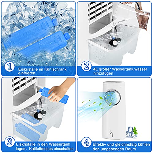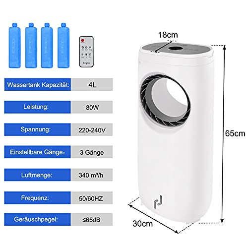 Froadp 80W Condizionatori Portatile Aria Condizionata Mobile Senza Tubo di Scarico Ventilatore di Umidificazione 3 in 1 Raffreddatore D'aria con Telecomando e Timer (Capacità 4 Litri)