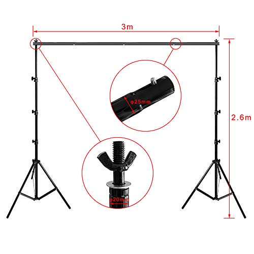 Froadp 2,6x3 m Set di Fondali Supporto per Fondali in Lega di Alluminio con 3 Colori in un Unico Pezzo Design Senza Cuciture Tessuto non Tessuto Sistema di Fondali per Studio Fotografico