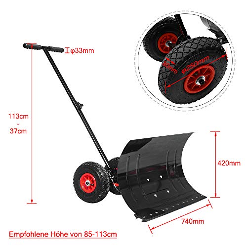 Froadp - Pala da neve su ruote, angolo regolabile in altezza, 74 cm di larghezza
