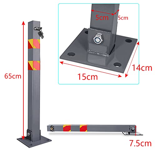 【Blocco di parcheggio pieghevole】Dimensioni della colonna: 5x5x65 cm, diametro interno del tubo: 4 cm, dimensioni del substrato: 15x14 cm, materiale: acciaio.