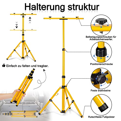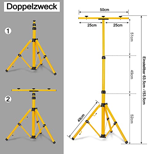 【Supporto telescopico per luce di lavoro】Materiale: Acciaio verniciato a polvere, Colore: Giallo, Gamma regolabile in altezza: 63.5-153.5cm.