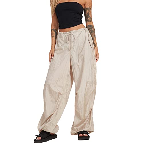 Frobukio - Pantaloni cargo da donna, casual, ampi, a gamba larga, vintage, a vita bassa con coulisse, stile hip hop, indie, Y2K, pantaloni jogger estivi casual larghi, Beige, M