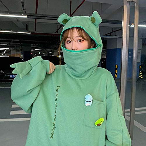 Frog Zipper Hoodie,Frog Zipper Pocket Oversized Hoodie Plain,Womens Cute Frog Hoodie Winter Warm Thick Loose Oversized Sweatshirt White L
