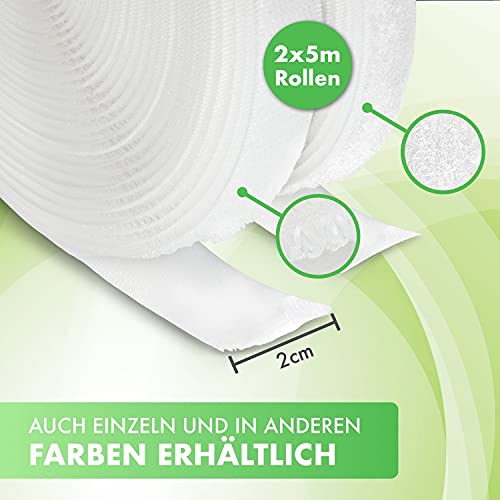 FrogJim nastro in pile e gancio per cucire e artigianato bianco larghezza 20mm, rotolo di 5m in pile e rotolo di 5 m gancio, non autoadesivo KRNW5