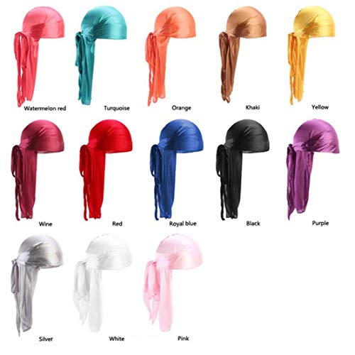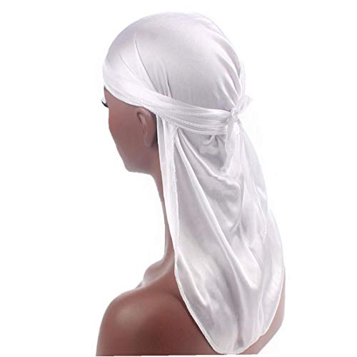 Froiny Unisex Poliestere Turbante Cap Silky Durag Coda lunga spalline larghe headwraps Smooth Dome Pirate Cap solido di colore dell'involucro della testa