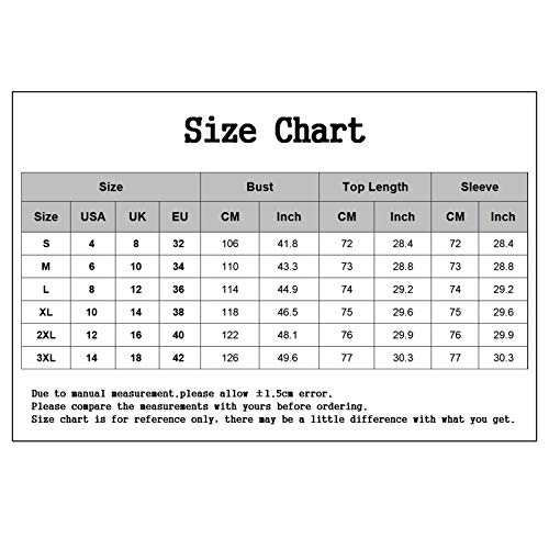 [La nostra taglia 3XL] Busto: 126 cm / 49,6 ", Manica: 77 cm / 30,3", Lunghezza: 77 cm / 30,3 "(circa) Scegli la taglia che fa per te in base alla tabella delle taglie. Per qualsiasi domanda, faccelo sapere. Sono disponibili sei taglie (S, M, L, XL, 2XL, 3XL) e puoi scegliere quella più adatta a te.