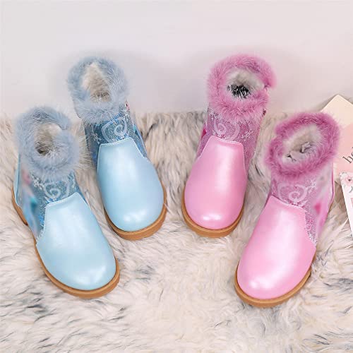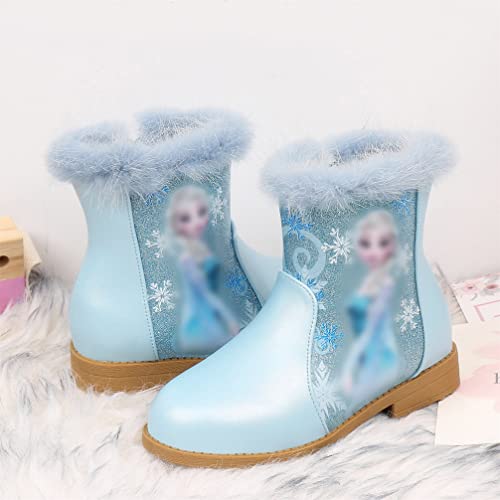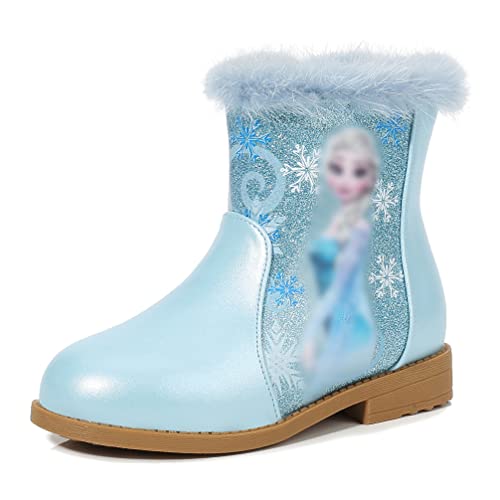 New front Bambina Stivali da Cerniera Caldo Stivali Corti Carino Stivali da Neve per Bambine e Ragazze Frozen Elsa Scarpe di Cotone con Paillettes,Blu,34EU