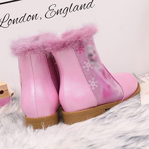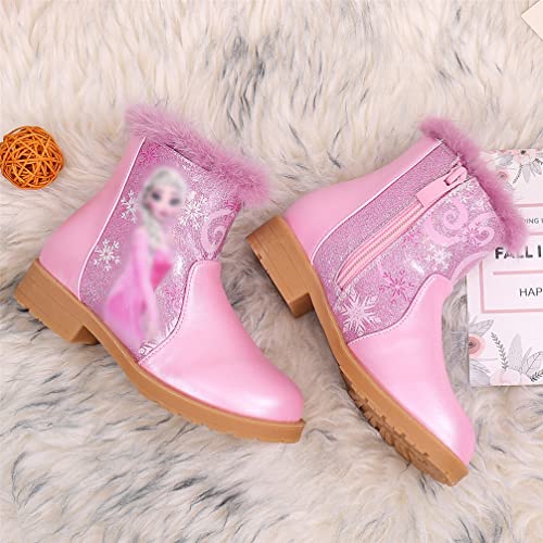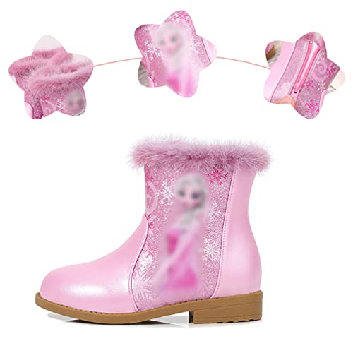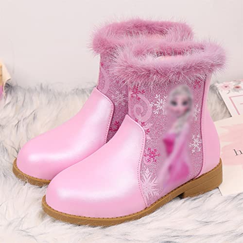 New front Bambina Stivali da Cerniera Caldo Stivali Corti Carino Stivali da Neve per Bambine e Ragazze Frozen Elsa Scarpe di Cotone con Paillettes,Rosa,36EU