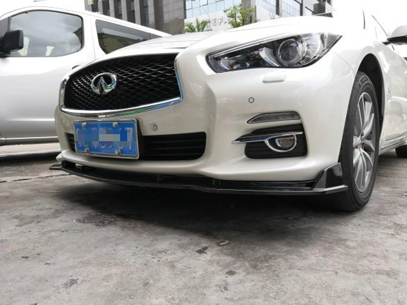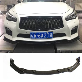 Front Bumper Carbon Fiber/ Matte Black PP Chin Lip Spoiler Splitters Protection Trim For Infiniti Q50 Q50S 2014-2017