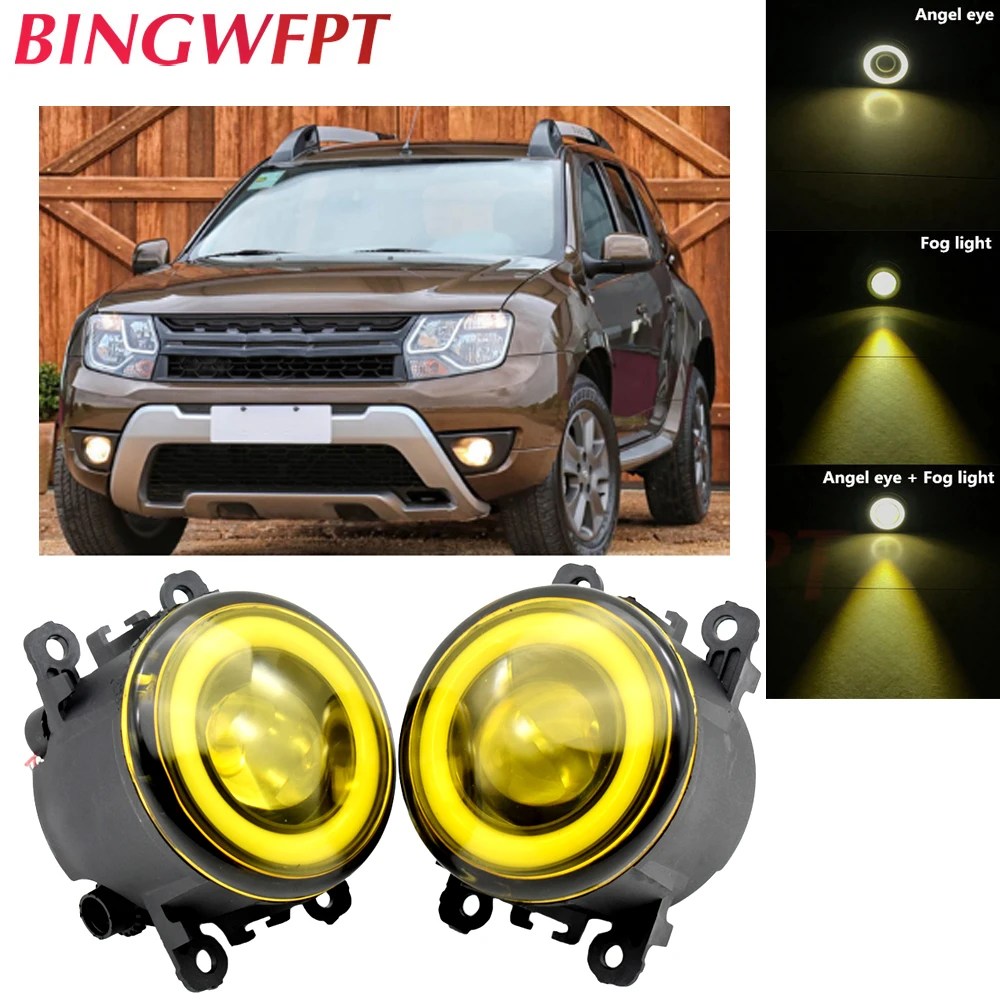 2 X Front Bumper LED Fog Light For Renault DUSTER LOGAN Saloon LS LM0 LM1 Master II LATITUDE With Angel Eye