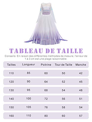 New front Costumi per Bambini Principessa Elsa Abiti Bambine Corona Bacchetta Magica Specchio Fermaglio per Capelli Travestimento Regalo Compleanno Natale Manica Lunga,Viola 2,160