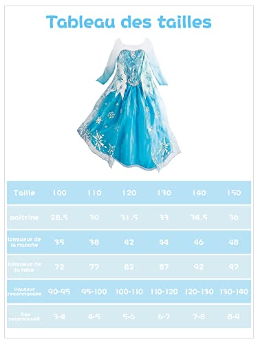 New front Ragazza Principessa Abito Regina della Neve Bambino Travestimento Principessa Elsa Costume Natale Regalo Abito Carnevale Halloween Manica Lunga,blu,100-150