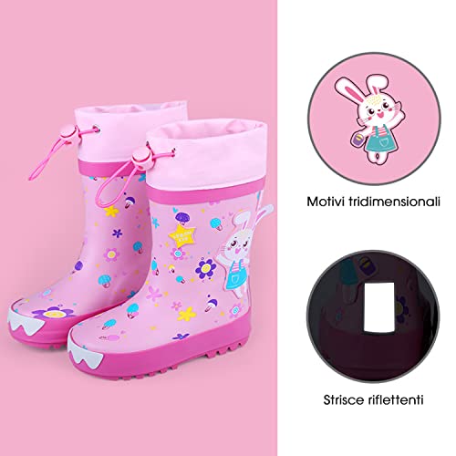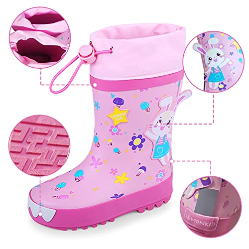 New front Stivali da pioggia alti Bambine Ragazze Invernali Più cashmere Addensare Il nuovo Bambino Stivali da pioggia Ragazzi e ragazze Scarpe da acqua Scarpe per bambini Cartoni animati,Rosa,26