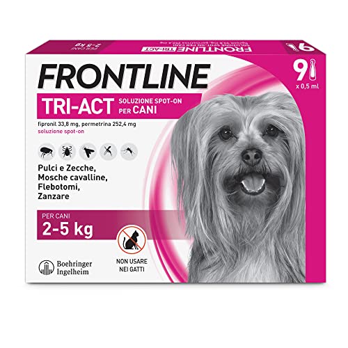 FRONTLINE Triact, 9 Pipette, Cane XS (2-5 kg), Antiparassitario per Cani e Cuccioli di Lunga Durata, Protegge il Cane da Pulci, Zecche, Zanzare, Pappataci e Leishmaniosi, Antipulci 9 Pipette