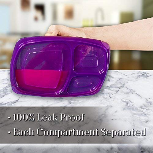 5 contenitori per la preparazione dei pasti di alta qualità, ciascuno vanta: volume da 1065 ml, 3 scomparti per il controllo delle porzioni, facile sollevamento e labbro sicuro, guarnizione esterna e interna a prova di perdite (contenitori per alimenti 100% a tenuta stagna).