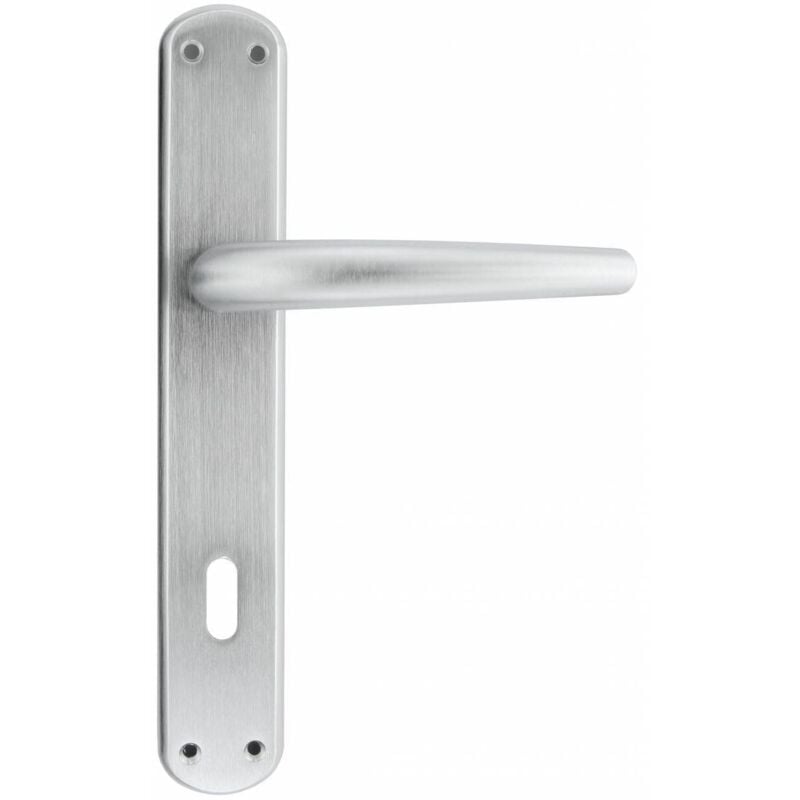 Maniglia con placca Q8/90 in lega. Finitura cromo satinato