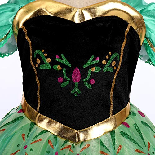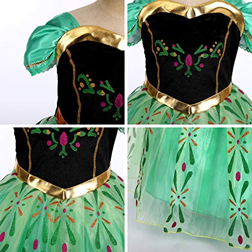 Frozen 2 Abito da Principessa Anna Costume da Incoronazione Halloween Natale Carnevale Cosplay Vestire Compleanno tutù Ricamo Floreale Regina di Ghiaccio Vestiti da Festa Verde 04 3-4 Anni