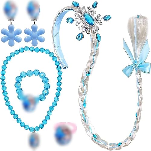 Taglia: Collana, Bracciale, Anello, Orecchini a clip, 1 parrucca Elsa, adatto per bambini da 2 a 8 anni.