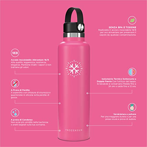 FROZENSUN Borraccia Termica Acciaio Inox 304 Isolamento Sottovuoto Doppia Parete | Bevande Fredde fino a 24 ore e Calde fino a 12 ore | Senza BPA | Bottiglia Thermos Acqua The Caffè Thermos | 700ml