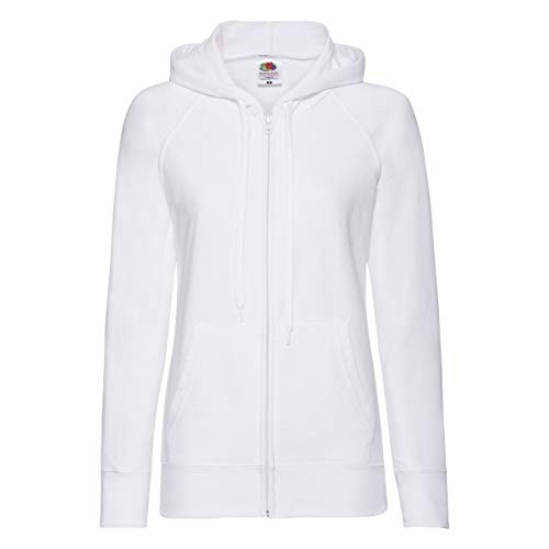 Fruit of the Loom, Zip Front Lightweight, Felpa Con Cappuccio, Donna, Bianco, XL/16