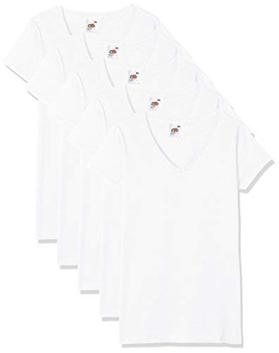 Fruit of the Loom Valueweight V Neck Lady-Fit Pacco da 5 Maglietta, Bianca, S Donna