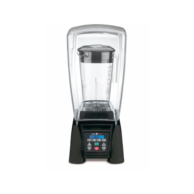 Lama in acciaio inossidabile. Alloggiamento in policarbonato. La funzione PULSE aumenta temporaneamente la velocità di rotazione, consentendo, ad esempio, di premacinare prodotti molto duri. Protezione dal surriscaldamento. Apertura nel coperchio superiore per aggiungere ingredienti durante la lavorazione. Efficienza: oltre 75 cicli al giorno. Ciclo di lavoro: 1 minuto acceso/3 minuti spento (lavorare nel ciclo previene il surriscaldamento) Il frullatore da barista WARING XTREME con custodia insonorizzata Waring consente di ottenere risultati sempre ripetibili: una miscela perfettamente liscia con la giusta consistenza. Questo frullatore estremamente potente ed efficiente si distingue per un pannello di controllo con la possibilità di salvare programmi e una funzione aggiuntiva PULSE. Per ottenere i migliori risultati, il set include una tazza solida, priva di BPA, con foro per l'aggiunta degli ingredienti. L'alloggiamento con cancellazione del rumore garantisce un funzionamento