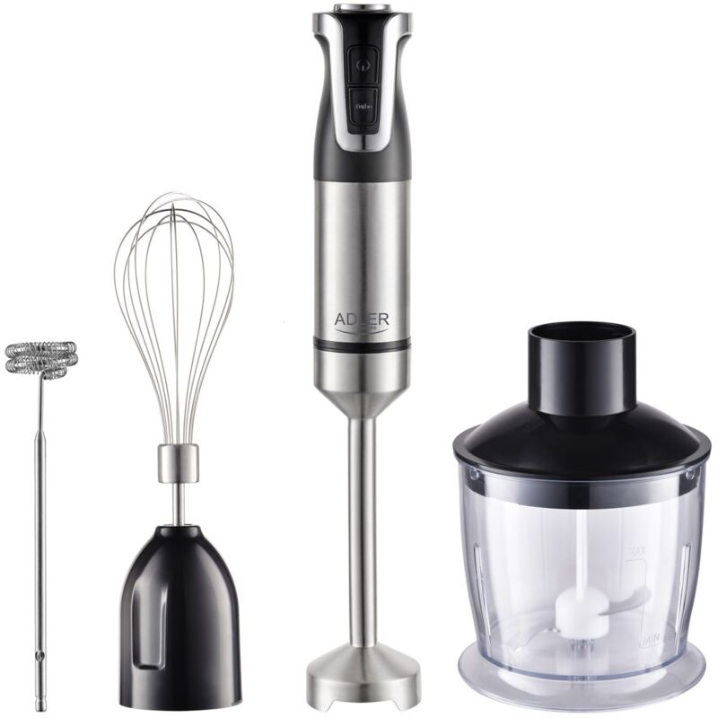 Design Colore del prodotto: Nero, Argento Tipo di connettore: Tipo C (Europlug) Accessori incluso nel set: Frusta in acciaio inossidabile, Recipiente con tritatutto, misurino, Montalatte, Lama miscelatrice in acciaio inossidabile Numero di lame:4 Materiale lama:Acciaio inossidabile Tipo:Frullatore a immersione Lunghezza cavo di alimentazione:1,05 m Alimentazione Potenza massima: 1800 W Tensione in ingresso CA: 220 - 240 V Fonte di alimentazione: CA Frequenza in ingresso CA: 50 - 60 Hz< /li> Potenza nominale:1200 W Peso e potenza dimensioni Altezza:405 mm Diametro prodotto:55 mm Peso:1,36 kg Prestazioni Modalità turbo:Sì Numero di velocità:20 Infinitamente variabile controllo della velocità:Sì