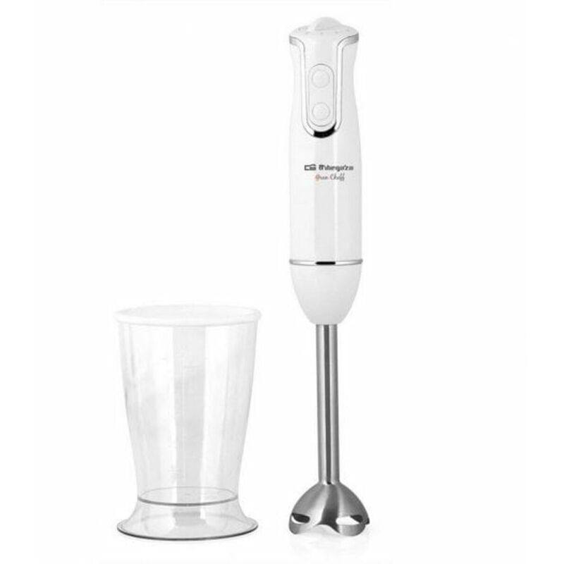 Frullatore a mano. Impugnatura ergonomica . Interruttore soft touch . Selettore di velocità . Due pulsanti . 2 velocità . Anello per appendere . Lama in acciaio inossidabile. Braccio staccabile in acciaio inossidabile . Tazza di miscelazione e misurazione 600 ml. Potenza 800W. 230 V. 50Hz.