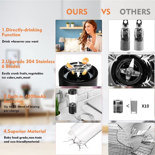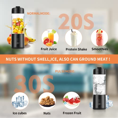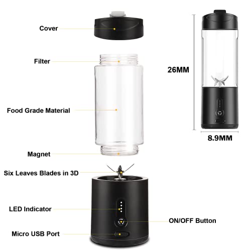 Frullatore portatile, 530ML Mini Frullatore USB Ricaricabile con 6 Lame e Spazzola Frullatore Personale per Frullati, Frutta e Verdura Tazza per Casa, Campeggio e Viaggi