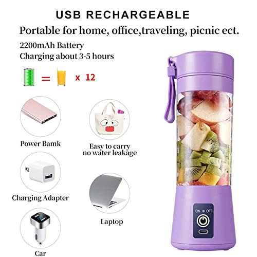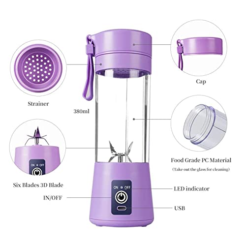 Frullatore Portatile Frullatore Di Dimensioni Personali, Frullatore Portatile per Frullati E Frullati, Mini Frullatore Ricaricabile Da 2200 Mah Da 380 Ml, Senza Bpa, per Viaggi, Sport, Cucina